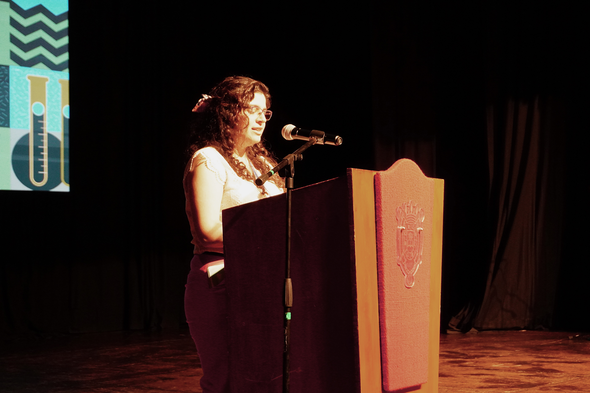 Comenzó con una metáfora con la cual buscó comparar a los y las investigadores del CONICET con los pequeños habitantes del fondo del mar identificados en el marco de la campaña de exploración en el fondo oceánico de Mar del Plata: “Estrellita culona” y “Batatita”, que descubren con la visita de los humanos y su posterior salida a la superficie un mundo desconocido lleno de desafíos y sorpresas. A través de esta imagen poética, la investigadora quiso transmitir cómo la ciencia combina curiosidad, pasión y trabajo colectivo, y cómo los nuevos ingresantes, al sumarse al sistema científico, enfrentan obstáculos y oportunidades con la misma fascinación y compromiso que los personajes marinos experimentaron al explorar el mundo humano.