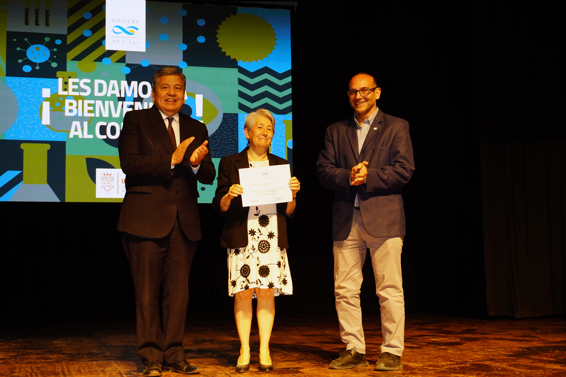 Así como hay profesionales que ingresan, hay otros que culminan una etapa en la institución. Pues bien, a todos ellos el CONICET NOA Sur les brindó un merecido reconocimiento agradeciéndoles el esfuerzo de años dedicados a la búsqueda del conocimiento científico y la formación de recursos humanos. En representación de ese conjunto de investigadores, técnicos y administrativos, Ana Teresa Martínez, ex directora del Instituto de Estudios para el Desarrollo Social (INDES, CONICET-UNSE) dirigió unas palabras a los presentes.